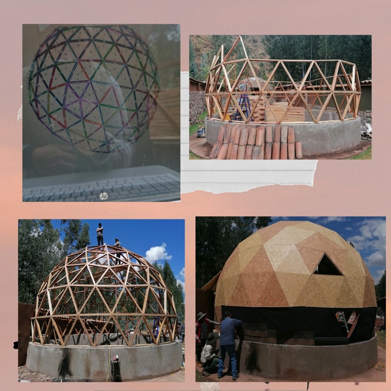 Es una construcción semiesférica, autoportante y sismorresistente, inspirada en los patrones geométricos de la naturaleza